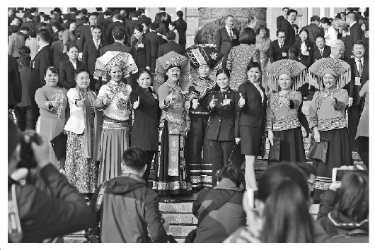 ▲ 10月24日,中国共产党第十九次全国代表大会在北京人民大会堂举行闭幕会。闭幕会后几位来自公安系统的代表依依话别,相约共赴新征程。 ◤ 十九大闭幕会后,代表们用点赞的手势表达喜悦心情。记者 居杨 摄 2017年10月24日上午,北京。中国共产党第十九次全国代表大会举行闭幕会。 大会通过了关于十八届中央委员会报告的决议、关于十八届中央纪律检查委员会工作报告的决议、关于《中国共产党章程(修正案)》的决议。 这是高举旗帜、团结奋进的盛会——过去的7天里,2300多名十九大代表和特邀代表,履行使命,描绘蓝图,凝聚共筑中国梦的磅礴力量。 这是具有里程碑意义的盛会——拥有8900多万党员的中国共产党,将习近平新时代中国特色社会主义思想写入党章,对于在新起点上进行伟大斗争、建设伟大工程、推进伟大事业、实现伟大梦想,必将产生重大而深远的影响。 大会在雄壮的《国际歌》声中胜利闭幕。 蓝图绘就,重在落实—— 十九大代表、山西省柳林县公安局网络安全保卫大队大队长袁子捷和十九大代表、海南省?谑泄簿智砩椒志直阋戮齑蠖哟蠖映し腙,一同走出人民大会堂。他们说,作为公安民警,他们将始终不忘初心,不断提升人民群众安全感和满意度,“人民对美好生活的向往,就是我们的奋斗目标”。 “新时代,人民群众对公安执法水平的要求会更高,公安机关要主动适应新期盼,不断提升执法公信力!狈腙退。 作为法官队伍的一员,十九大代表、天津市第一中级人民法院院长蔡志萍说:“我们要围绕新时代中国社会的主要矛盾,围绕人民群众对幸福生活的向往,深化司法体制综合配套改革,全面落实司法责任制,努力让人民群众在每一个司法案件中感受到公平正义! “处在这样一个伟大时代,倍感自信和自豪,也深感责任重大!笔糯蟠、江西省瑞昌市禁毒办副主任周俊军说,一定要牢记使命,继续努力,时刻把人民群众的安危冷暖挂心上。 十九大代表、辽宁省丹东市检察院侦监处处长吴凤杰对未来我国法治建设充满信心:“经过司法体制改革,我们的员额检察官办案责任心更强了,职业荣誉感更高了,不断提高办案质量和水平的动力更足了。大家都能理解改革、认同改革、支持改革、参与改革! “今天,我们比历史上任何时期都更接近、更有信心和能力实现中华民族伟大复兴的目标!贝砻呛狼槁。 新时代,新征程,不忘初心,牢记使命,向着伟大复兴中国梦,出发! |